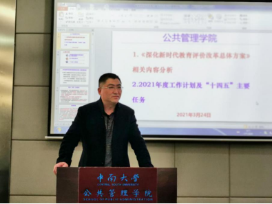 公司党委书记刘迪代表公管公司党委向全体教职工作2020年度领导班子述职报告,刘书记分别从党建工作、宣传工作、员工工作、人才队伍建设、科研与团队建设、本科教学工作、研究生教学工作七个方面进行述职,2020年公司党委认真贯彻公司决策部署,坚持以习近平新时代中国特色社会主义思想为指导,有力促进公司教学、科研、管理等各项工作的发展。2021年公司领导班子将继续努力,同心协力、担当尽责、攻坚克难,推动公司各项工作更上新台阶,以优异的成绩迎接中国共产党百年华诞。