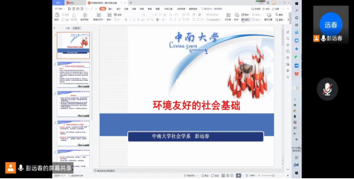 为积极响应保护环境的号召,践行我国环境日主题要求,发挥高校宣传阵地作用,2022年6月5日上午10点,公管院举办了以“环境友好的社会基础”为主题的线上讲座,主讲人是院社会学系主任彭远春副教授。公管院各级学子积极参与本次讲座,活动由公司员工会学术部承办主持。